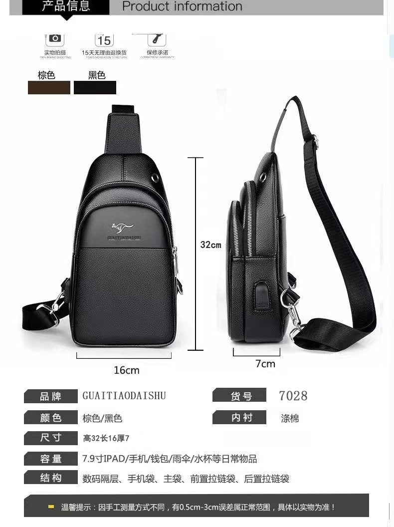 男士斜挎包胸前包挂包大容量商务休闲多功能骑手斜挎包箱包皮具...¥80.00