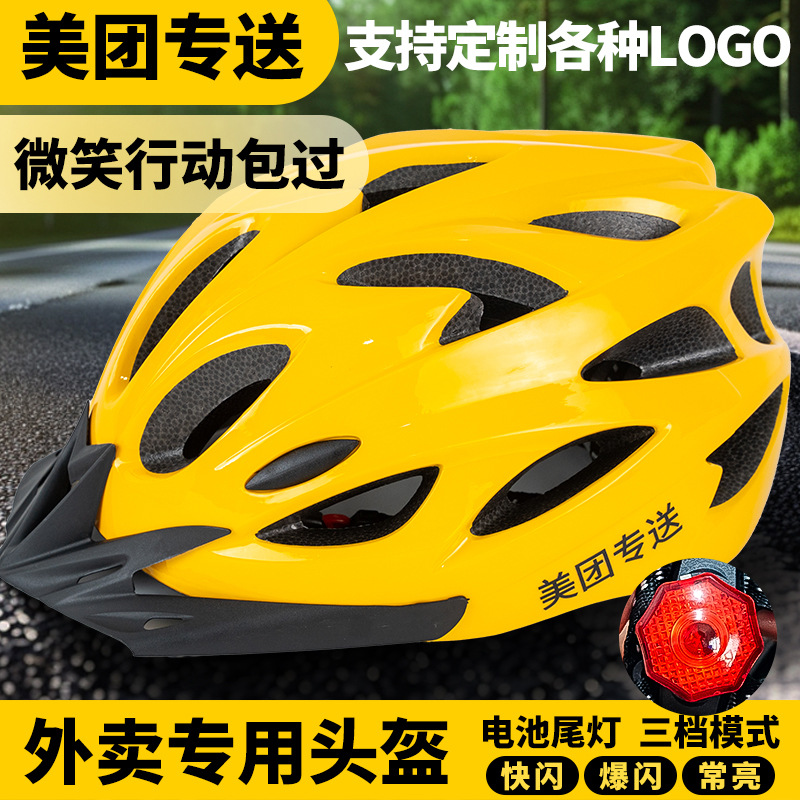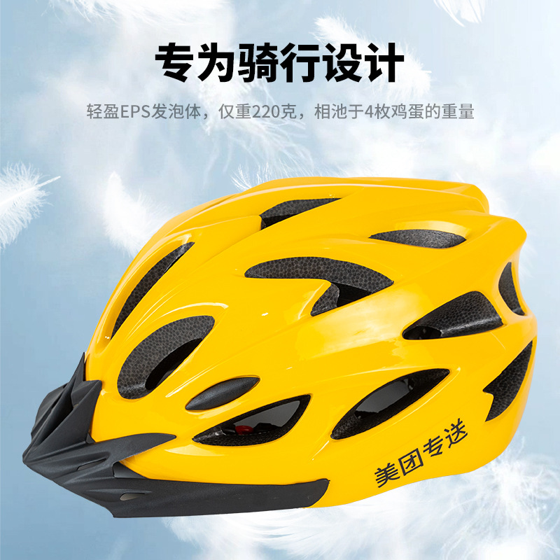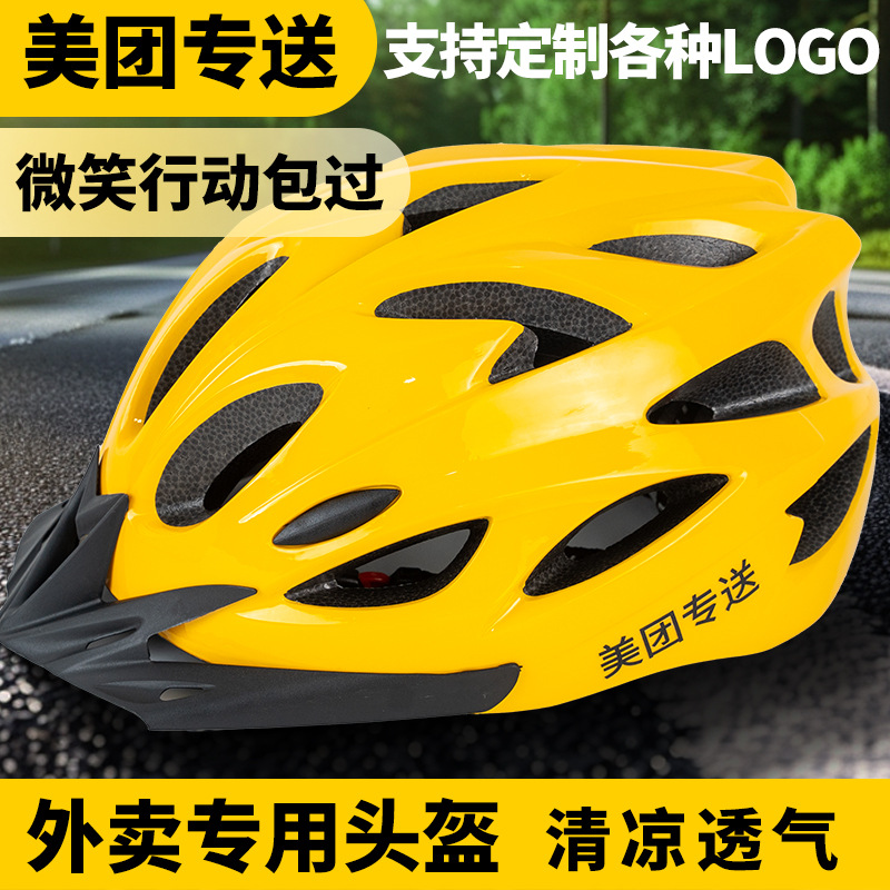 美团外卖头盔女男骑手装备骑行盔帽子透气山地车一体成型头盔...¥39.00